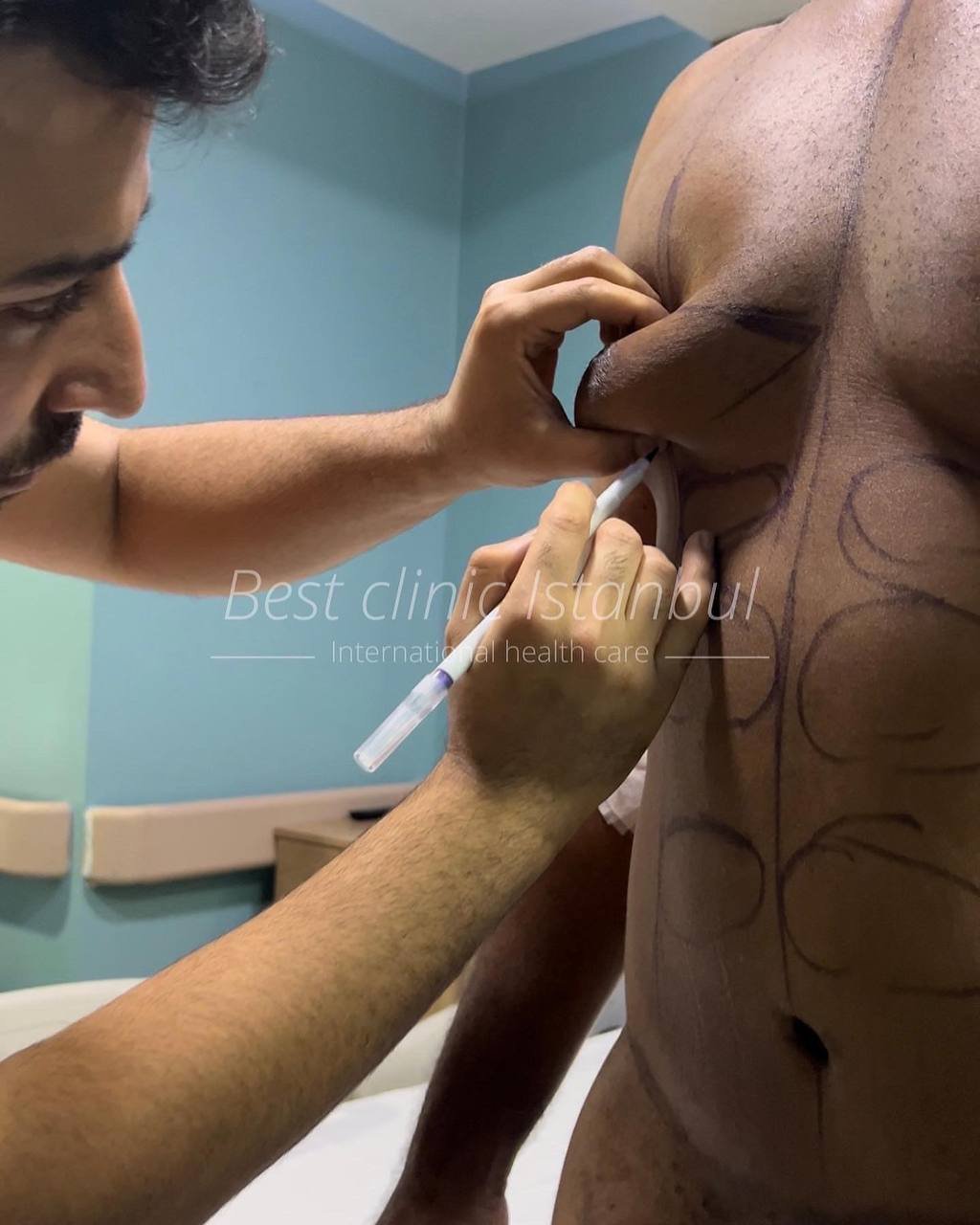 On the second day, he returned to the clinic for a consultation with our medical team. We did the body-marking session and explained all necessary instructions. After that, he met with the anesthesiologist to ask a few questions before entering the operating room.