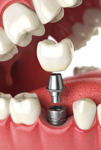 Once healing is complete, a custom crown or prosthetic tooth is attached, restoring your smile and function.